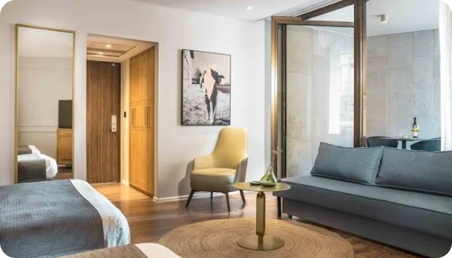 dentro dos teus muros e prosperidade dentro dos teus palácios.” Chegada ao hotel para